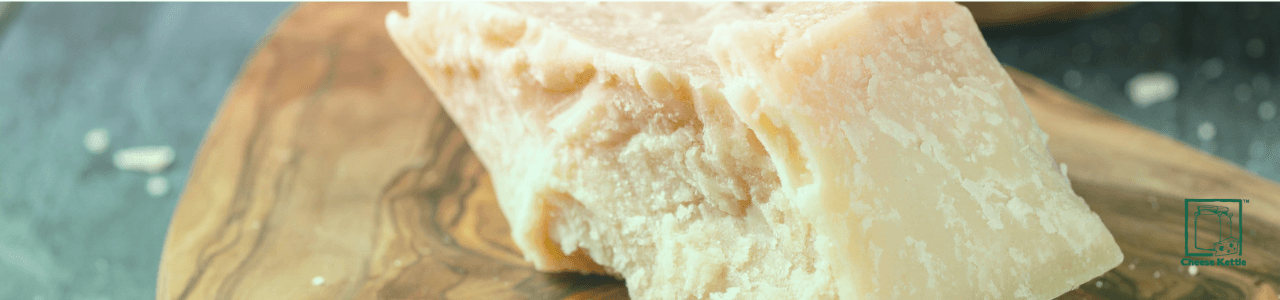 Parmesan cheese‑style cooked‑curd cheeses are extra‑hard, long‑aged cheeses where curd is cut small, stirred actively, and heated to a relatively high temperature. On a small scale, this means tight control of cut size, stirring intensity, and a stepped cook that gives a firm curd that still knits into a solid wheel. The result is a cheese that can be grated, shaved, or broken into chunks for snacking, with a rich, savoury taste that lifts many recipes.